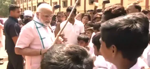 पीएम नरेंद्र मोदी निकले स्वच्छता मिशन पर, भीमराव अंबेडकर स्कूल में लगाई झाण्डू