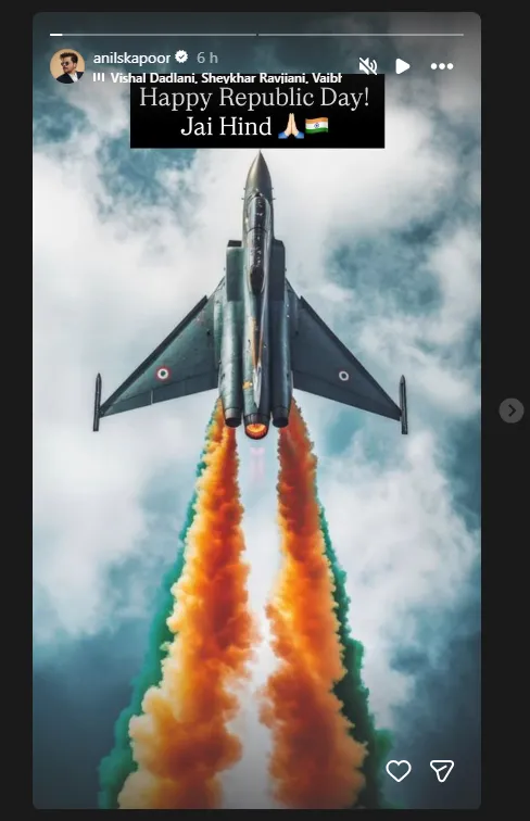 बॉलीवुड एक्टर अनिल कपूर ने रिपब्लिक डे की शुभकामनाएं देते हुए इंस्टाग्राम पर पोस्ट शेयर किया.