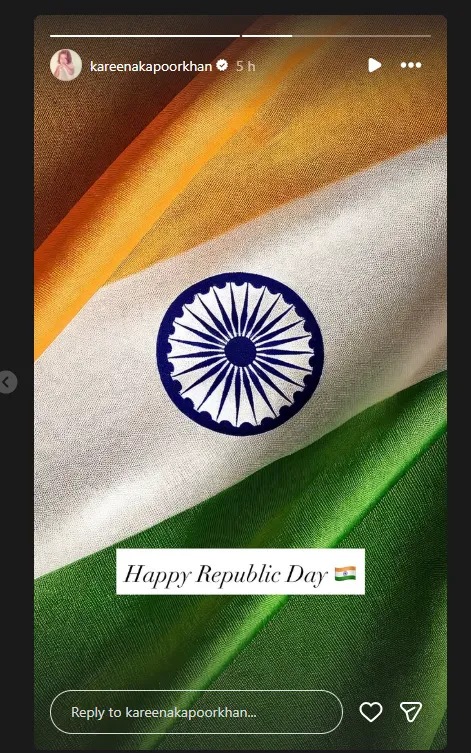 बॉलीवुड की बेबो करीना कपूर ने भी इंस्टाग्राम पर स्टोरी लगाते हुए फैंस को रिपब्लिक डे की शुभकामनाएं दी.