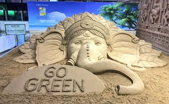 सैंड आर्टिस्ट सुर्दशन पटनाएयक ने गणेश चतुर्थी के उपलक्ष्य पर बप्पा की तस्वीर उकेरी।