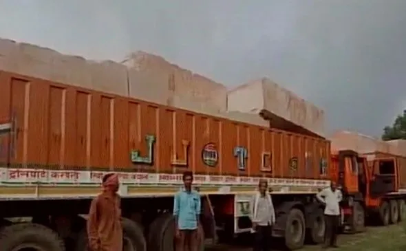 अयोध्या में राम मंदिर के बनाने के लिए लाया गया पत्थर
