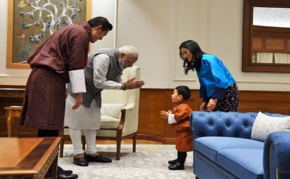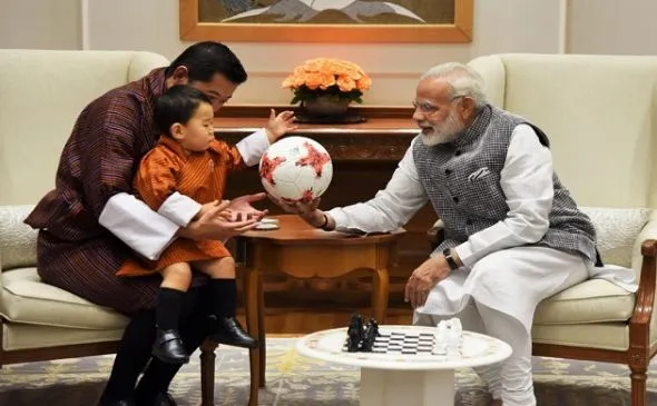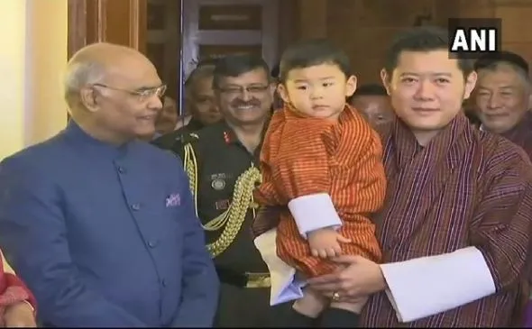 भूटान नरेश जिग्मे खेसर नामग्येल वांगचुक, उनकी पत्नी पेमा जेतसुन वांगचुक और भूटान के नन्हे प्रिंस जिग्मे नामग्याल वांगचुक मंगलवार को 4 दिन के सद्भावना दौरे पर भारत पहुंचे हैं। इस दौरान उन्होंने राष्ट्रपति रामनाथ कोविंद और प्रधानमंत्री नरेंद्र मोदी से मुलाकात की। प्रधानमंत्री नरेंद्र मोदी ने नन्हें प्रिंस को फुटबॉल अंडर 17 वर्ल्डकप की ऑफिशियल फुटबॉल गिफ्ट की।