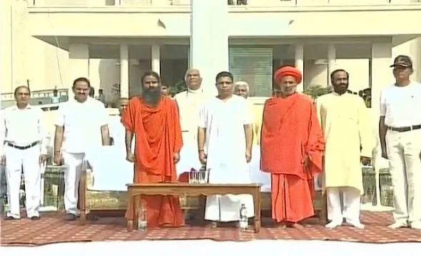 पतंजलि योगपीठ के संस्थापक बाबा रामदेव ने हरिद्वार में 100 फुट ऊंचा तिरंगा फहराया