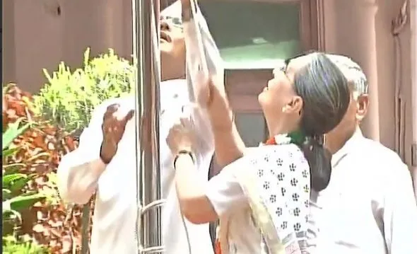 कांग्रेस पार्टी प्रमुख सोनिया गांधी ने पार्टी दफ्तर में फहराया तिरंगा